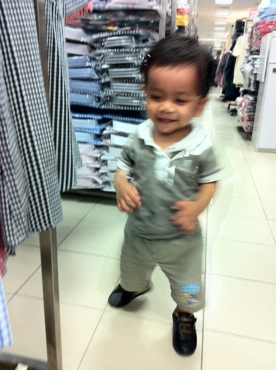tengok tu, adam pu8n sibuk nak jalan, yg best tu xbawak kasut adam..so jalan jelah dgn stokin pun ;p adam terjerit2 masa jalan..hepi ye sayang....